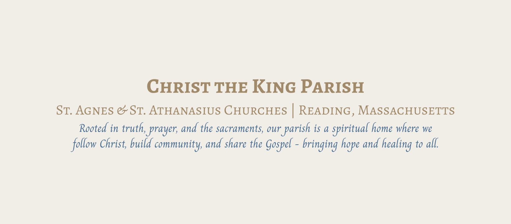 Our Parish, led by Pastor, Fr. Bobby LeBlanc, has two worship sites: St. Agnes Church (186 Woburn Street) and St. Athanasius Church (300 Haverhill Street).